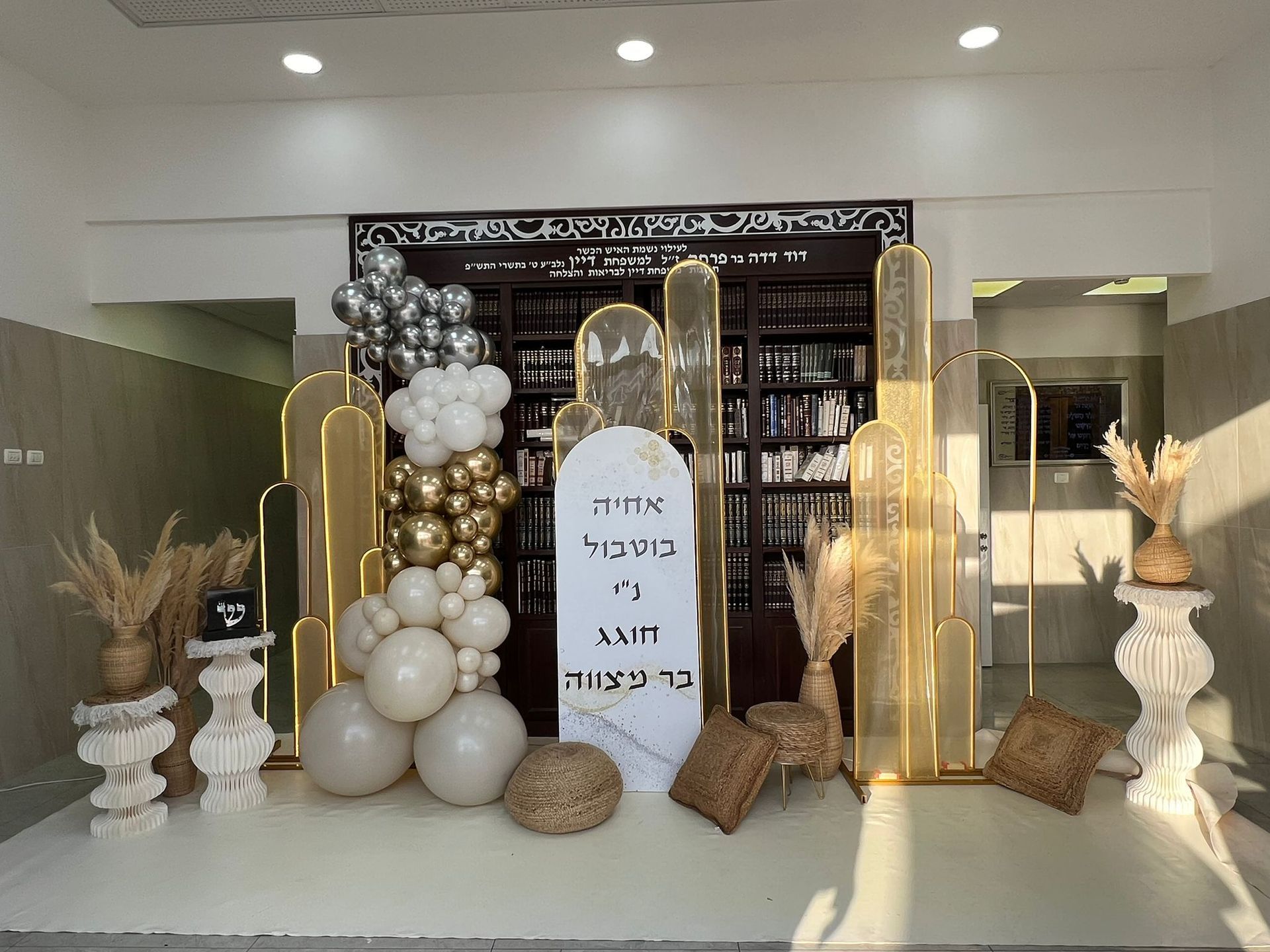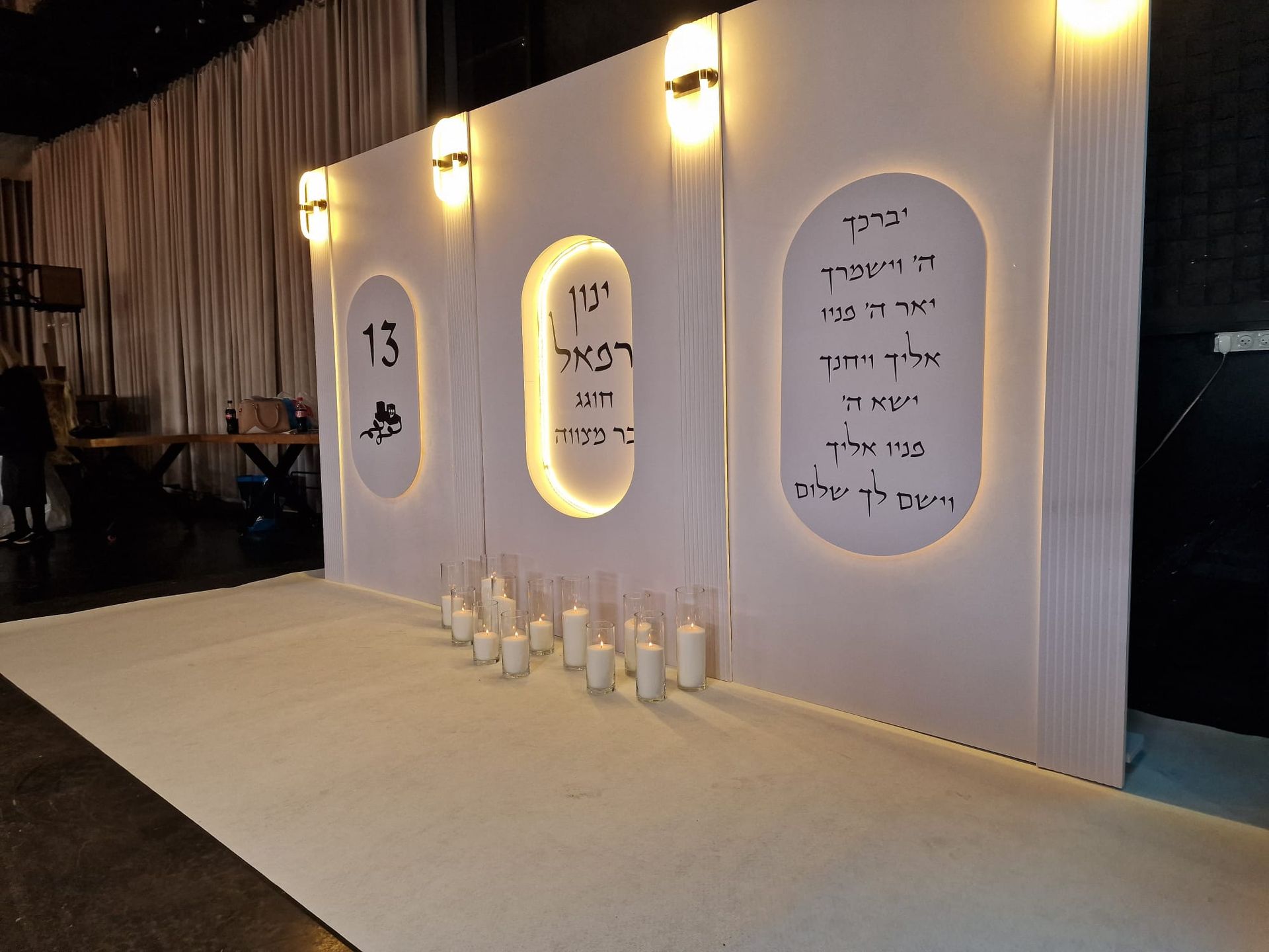 הכניסה לאולם צריכה ליצור רושם ראשוני מרשים. שער כניסה מעוצב, שמשלב את שם חתן או כלת השמחה עם אלמנטים שקשורים לנושא האירוע, נותן לאורחים טעימה ראשונה ממה שמצפה להם בפנים. זה יכול להיות שער בסגנון ספורטיבי, מוזיקלי, או כל נושא אחר שמתחבר לאופי של הנער או הנערה.